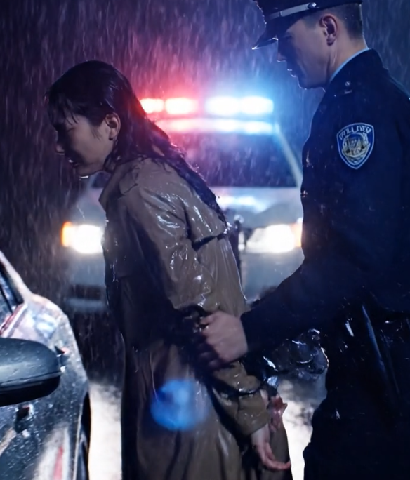 彼女は、覆面パトカーが自分の出口を塞ぐまで、その存在に気づかなかった。