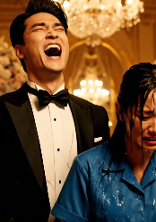 ドアが勢いよく開くと、そこに娘が立っていた。真っ赤なカクテルドレスを身にまとい、髪は今まで見たこともないような凝ったスタイルにまとめられていた。私を見ると、彼女の笑顔は消え失せた。