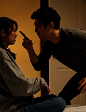 取り乱した妻。